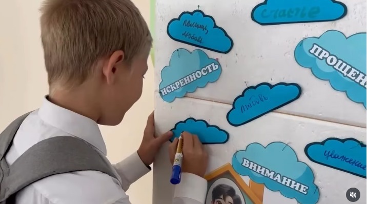 Мектеп психологының ұсынысымен оқушылар отбасында қандай сезімдер болуы керектігі туралы (махаббат, құрмет, қамқорлық, қолдау) және қандай нәрселерге орын жоқ екені жайлы (ұрыс-керіс, немқұрайлылық, сенімсіздік) өз ойларымен бөлісті.